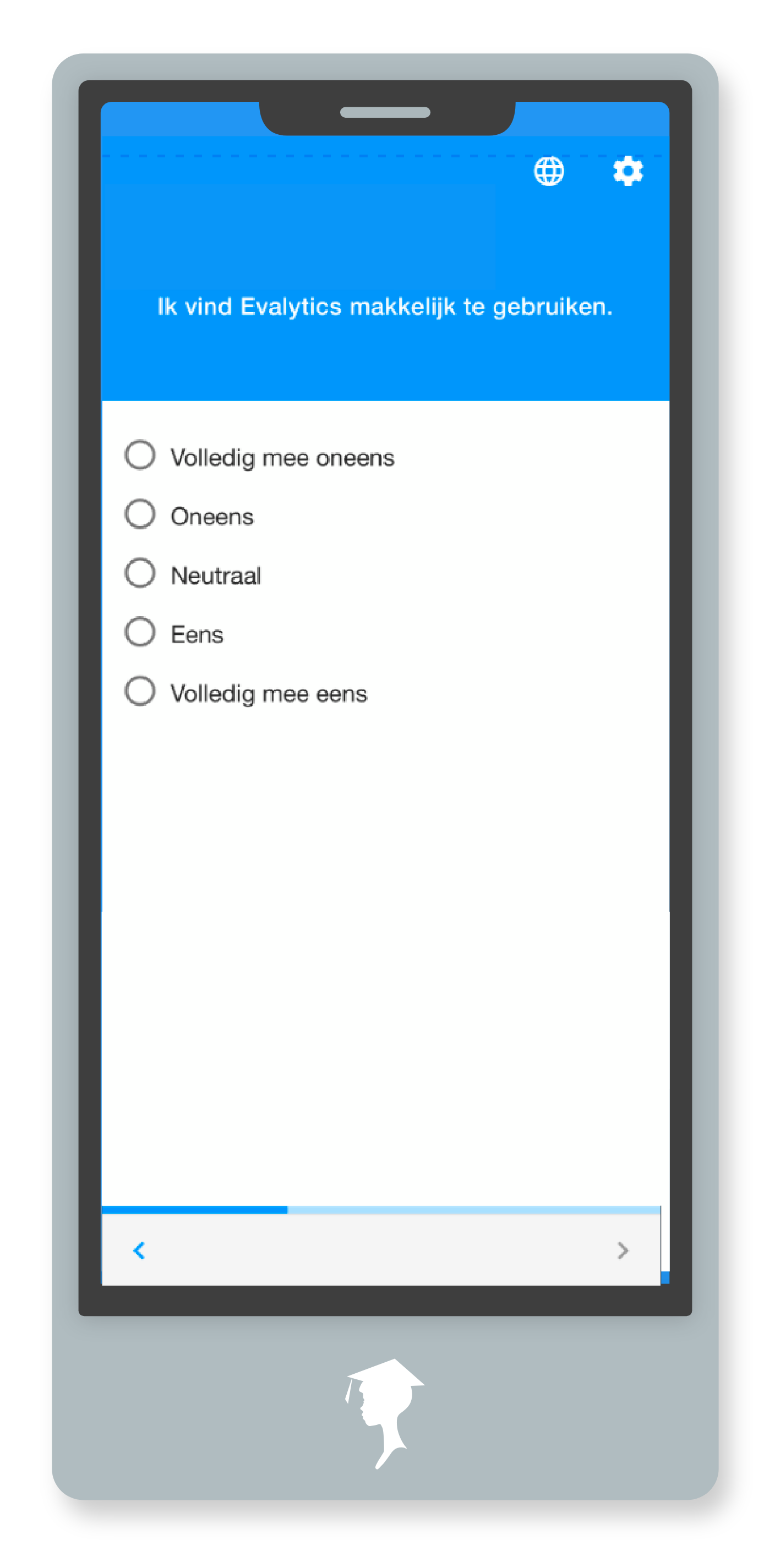 Snel passende evaluaties klaarzetten en afnemen? Dat kan! Evalytics biedt een snelle en efficiënte manier van het klaarzetten van evaluaties. De studenten kunnen de evaluatie zowel via het web als de mobiele app invullen. Ze kunnen dit tijdens een les op school doen, maar ook in de treinof als ze thuis zijn.